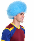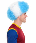 Argentina Sport Afro Fun Wig | White Sky Blue Cosplay Halloween Wig
