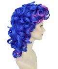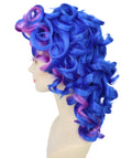 HPO Adult Women Blue & Purple Big Curly Wig | Voluminous Synthetic Costume Hair for Cosplay, Halloween & Parties | Breatheble Capless Cap