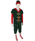 This deluxe set includes a vibrant green and red tunic with gold trim, matching pants, a wide black belt, a classic elf hat with a jingle bell, and curled-toe shoe covers. Designed to capture the playful yet traditional spirit of a Christmas elf, this costume is perfect for holiday parties, parades, community events, or working alongside Santa at meet-and-greets.