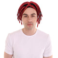 HPO Adult Men’s Red Dreadlocks Wig | Short Synthetic Rapper-Style Hairpiece for Costumes, Performances & Events | Breathable Capless Cap