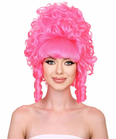 Womens French Colonial Marie Antoinette Wig, Neon Pink Historical Cosplay Wigs, Premium Breathable Capless Cap