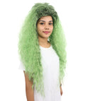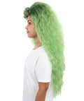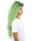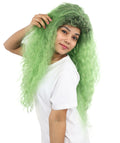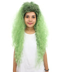 HPO Adult Witch Wig for Women | Extra Long Curly Hairpiece with Green & Black Blend | Adjustable Inner Cap for Halloween, Cosplay & Stage