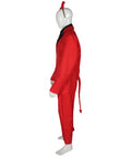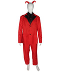 This bold and menace cosplay item is made of non flammable synthetic fabric that features a classic red and black color scheme, complete with a red jacket, a black pants and a devil’s horn or bands.