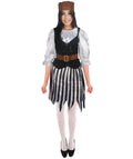 Become a flirty pirate with our Pirate Costume! Perfect for Halloween and Comic-con, this costume is made with quality fabric for maximum comfort. This costume set includes a white top, black-white striped skirt, a brown belt, a brown hat, and a black vest. So, what are you waiting for? Dress up like a flirty pirate and rock out at your next costume party!