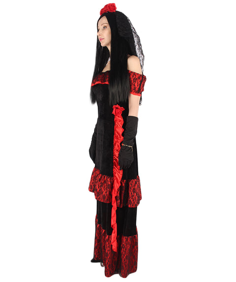 Adult Women Day of the Dead Bridal Costume | Black & Red Halloween Costume