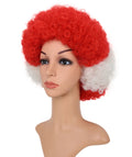 HPO Adult Austria Clown Wig – Red White Afro Flag Wig | Fun Sports Fan Wig for Matches, National Celebrations, Parties & Events