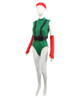 HPO Adult Elite Female Fighter Outfit | Green Bodysuit with Red Beret, Gloves & Black Belt Holster | Cosplay, Halloween & Role Play