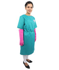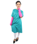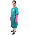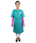 Fantasy Gothic Surgical-Style Costume has a look that’s more about mood than accuracy, and that’s honestly what makes it interesting. It doesn’t try to look real or technical. Instead, it leans into shape, color, and how the outfit reads from a distance. The teal gown immediately stands out, especially because it falls to the knee and keeps a clean, almost dramatic outline. Add the belt detail, and suddenly the whole thing feels intentional, like it’s meant to be seen, not examined up close.