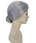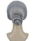 HPO Adult Female EG Old Woman Grey Straight Bun Wig, Synthetic Fiber Hair, Perfect for Halloween & Themed Parties, Breathable Capless Cap, Flame-retardant Synthetic Fiber