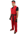 Throw yourself into the action with the HPO Video Martial Arts Fighter Outfit. It’s the kind of costume that makes you feel like you’re about to jump off a game screen—or at least strike a pose that looks like it. Red gi top, matching pants, black belt, and some red accents. Pretty classic, pretty bold. People notice this one.