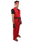 Martial Arts Fighter Outfit is made from polyester, so it’s light and not suffocating. The waist ties are adjustable—helpful if you’re trying to move fast or just don’t want it slipping down mid-punch. You can run around, strike poses, or spin in place, and it won’t hold you back. The red headband and gloves? Little touches that make it feel complete. Honestly, it’s more fun than expected, especially if you’re showing off for friends or at a party.