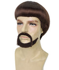 Adult Men’s Black Retro Bowl Cut Wig Mustache & Beard Set for Your Next Event