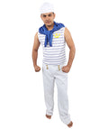 HPO Adult Men’s Fever French Sailor White & Blue Costume by Smiffys – Striped Shirt & Sailor Hat