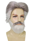 HPO Adult Men’s Franco Culture Modern Grey Halloween Wig, Mustache & Beard Set | Synthetic Flame‑Retardant Fiber | Breathable Capless Cap for Stage & Party