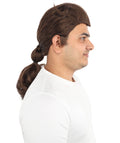 HPO Adult Men’s Movie-Inspired Auburn-Brown Long Biblical Wig with Ponytail – 18 Inch Capless Cap Wig for Halloween and Cosplay | Realistic Synthetic Historical Hairpiece