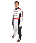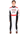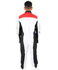 HPO Adult Men’s Racing-Themed Costume | Black, White & Red Jumpsuit with Gloves | RONIOR Fabric 3-in-1 Outfit for Performance & Cosplay