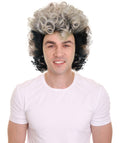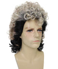 HPO Adult Men’s Rocker 80s Black & Brown Highlighted Mullet Wig | Funny Curly Hairpiece with Capless Cap Design | Ideal for Halloween and cosplay