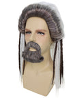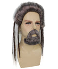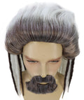 HPO Adult Men’s Sea Monarch Wig and Beard Set Deluxe | Medium Flowing White & Brwon Mixed Wig with Matching Beard | Costume Hairpiece for Halloween, Cosplay, Parties & Stage