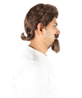 HPO Adult Men’s Wild West Brown Wig Mustache & Beard Set – Rugged Synthetic Hairpiece for Themed Parties