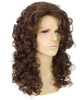 HPO Adult Men WIG Hippie Rock Wavy Mahogany Brown Lightweight Synthetic Fiber, Perfect for 60s & 70s Costumes Halloween and Retro Events,Breathable cap for comfort