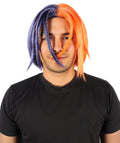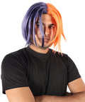 HPO Adult Men's 12 Inch Short Orange and Dark Blue Straight Wig | Flame-Resistant Capless Hairpiece | Lightweight Capless Design for Halloween and Party