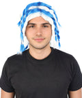 HPO Adult Men's Braided Rasta Dreadlocks Blue & White Wig | Medium Synthetic Hairpiece | Cosplay, Halloween, Party & Stage Costume
