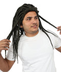 HPO Adult Men's Fantasy Black Tribal Wig | Long Black Synthetic Hair with Adjustable Cap for Cosplay, Themed Events, Halloween, Stage & Roleplay