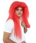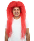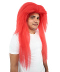 HPO Adult Men's Red Wig | Extra Long Layered Synthetic Hairpiece for Cosplay, Stage Performance & Halloween Party Wear