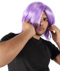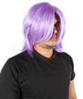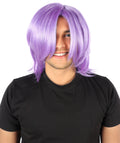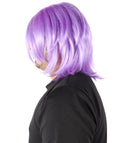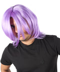 You see the Short Anime Lilac Wig, and it instantly feels alive — bright, bold, and full of character. The color is deep violet with a soft shine that catches light just enough to stand out. The short layered cut gives that classic anime shape, a little messy but styled with purpose.