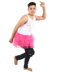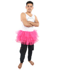 HPO Adult Men's White & Pink Ballet Tutu Costume – Layered Dance Themes Dress | Ideal for Halloween, Cosplay & Party Events