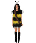 HPO Adult Multicolor Short Killer Bee Costume | Suitable for Halloween | Synthetic Fabric