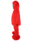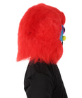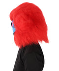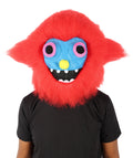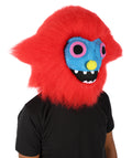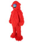 This unique creature-inspired Monster Costume Set features soft, fluffy red fur, a vivid blue mask with expressive eyes and sharp teeth, and large, furry feet for an exaggerated, cartoon-like appearance.