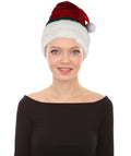 HPO Adult Unisex Classic Velvet Christmas Santa Hat | Soft Red and White Festive Holiday Hat | Ideal for Holiday fun