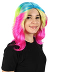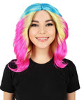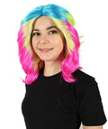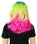 HPO Adult Women's Vibrant Wavy Bold Rainbow in Cosplay Troll Wig | Flame Retardant Synthetic Fiber Hair | Premium Breathable Capless Cap