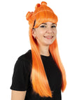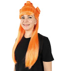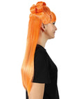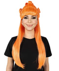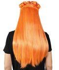 HPO Adult Women Megan Thee Stallion Long Straight Orange Wigs, Premium Breathable Capless Cap with Flame Retardant Synthetic Fiber Hair