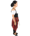 HPO Adult Women Red and Black Costume High Seas Buccaneer Style Pirate Dress | Women’s Medieval Pirate Outfit with Lace-Up Bodice and Flowing Skirt
