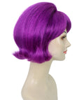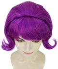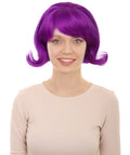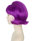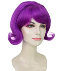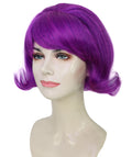 HPO Adult Women’s 60s Flip Purple Wig with Bangs | Short Retro Hairstyle with Outward Curls | Vintage Costume Hairpiece for Halloween, Cosplay, Parties & Stage