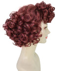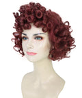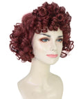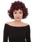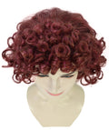 HPO Adult Women’s 80s Retro Short Curly Burgundy Wig | Classic Vintage Hairstyle with Bangs | Synthetic Costume Hairpiece for Halloween, Cosplay, Theater & Parties