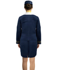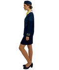 The Air Hostess Costume includes a form-fitted navy blue dress that captures the essence of vintage and modern airline uniforms.