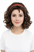 "Step into character with this medium curly Bob Wig, inspired by a caring animated figure. The 12-inch soft brown curls and red headband bring charm and warmth to your costume.