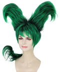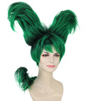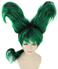 HPO Adult Women’s Artistic Hair Sculpture Black& Green Mixed Wig | Creative Shaped Hairstyle | Synthetic Fiber Hairpiece with Adjustable Cap for Cosplay, Parties & Stage