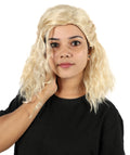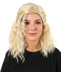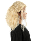 HPO Adult Women’s Blonde Medium-Length Wavy Wig | Flame-Resistant Medium Wig | Lightweight & Natural Look suitable for Party and Halloween