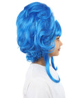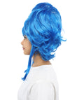 Crafted with flame-resistant synthetic fiber and built on a breathable, adjustable cap, it ensures comfort and wearability for hours of celebration. This beautiful Blue Wig will complement any magical appearance by giving its magical vibe.