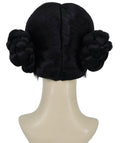 Wig styled in trendy short bob with twin buns