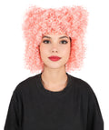 HPO Adult Women’s Creepy Circus Doll Wig | Curly Pink Hairpiece | Adjustable Inner Cap for Halloween, Cosplay, Stage & Parties