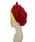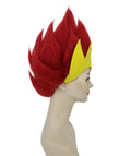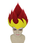 The Spiked Wig features a vibrant fire-inspired color scheme—deep crimson red base accented with striking yellow flame tips for a dramatic, attention-grabbing look.