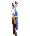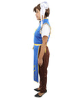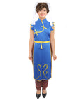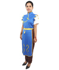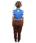 Step into the look of a bold fighter with this Women’s Fighter Cosplay Blue and Brwon Dress Costume. If you like characters who feel strong and energetic, this outfit gets the idea across without copying any specific one. The blue color really pops in person—brighter than you’d expect—but the dress still feels easy to move around in. The top fits close to the body, and the skirt has a layered swing that sorta follows you around when you walk, which is nice for photos or just wandering a con floor.