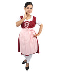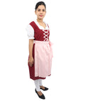 HPO Adult Women’s German Dirndl Dress Red & Pink Costume – Traditional Oktoberfest Outfit
