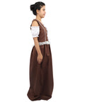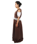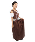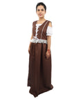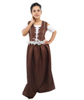 HPO Adult Women’s German Long Dirndl Brown & White Costume – Traditional Bavarian Oktoberfest Dress