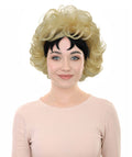 HPO Adult Women’s Golden Blonde Curly Wig with Dark Roots | High-Fashion Editorial Style | Ideal for Halloween | Breathable Capless Cap